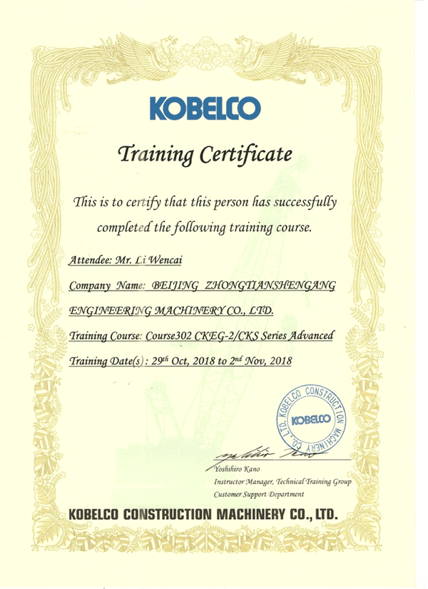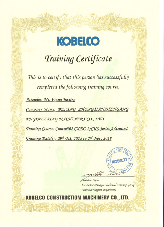 我公司的技術(shù)人員專業(yè)從事進(jìn)口吊車的維修和服務(wù)工作多年,有著扎實(shí)的理論基礎(chǔ)和豐富的實(shí)踐經(jīng)驗(yàn),并多次與國(guó)外的技術(shù)管理人員合作,得到他們的充分肯定。我公司工程師均接受過(guò)日本神鋼建機(jī)株式會(huì)社的技術(shù)培訓(xùn)高級(jí)課程,并以優(yōu)異成績(jī)獲得神鋼認(rèn)證的工程師證書。
